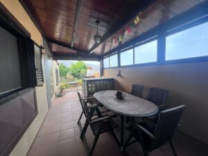 La vivienda cuenta con cuatro dormitorios, incluyendo una habitación principal con baño en suite y vestidor, y tres habitaciones individuales. Además, dispone de tres baños completos, un despacho con sofá cama en la parte superior y un amplio salón con televisor en la planta baja.La cocina está completamente equipada y el comedor incluye un sofá cama adicional para mayor comodidad. Disfruta de momentos inolvidables en el jardín con área de barbacoa y vistas al mar. La casa también cuenta con una solana y una sala de juegos para el entretenimiento de toda la familia. Los gastos de agua, luz, Wifi y filtro de agua potable están incluidos en el precio, y la propiedad utiliza energía solar, lo que la hace más sostenible.